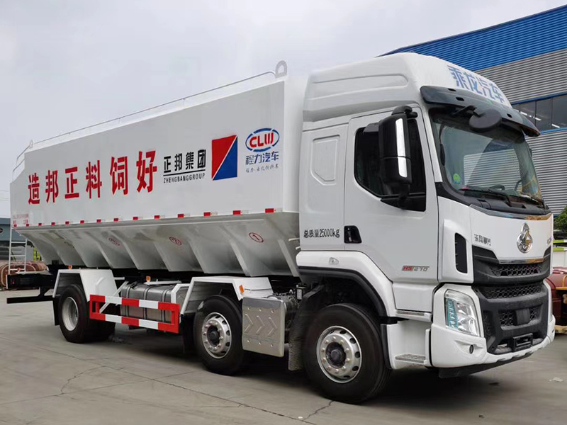 (4)料罐容積30-35方,4個(gè)獨(dú)立倉,實(shí)載:豬料 17-19噸,雞料19-21噸