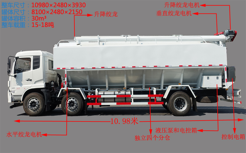 4、罐體內(nèi)可加裝分倉(cāng),可同時(shí)運(yùn)輸多種不同類的飼料或膨化介質(zhì)。