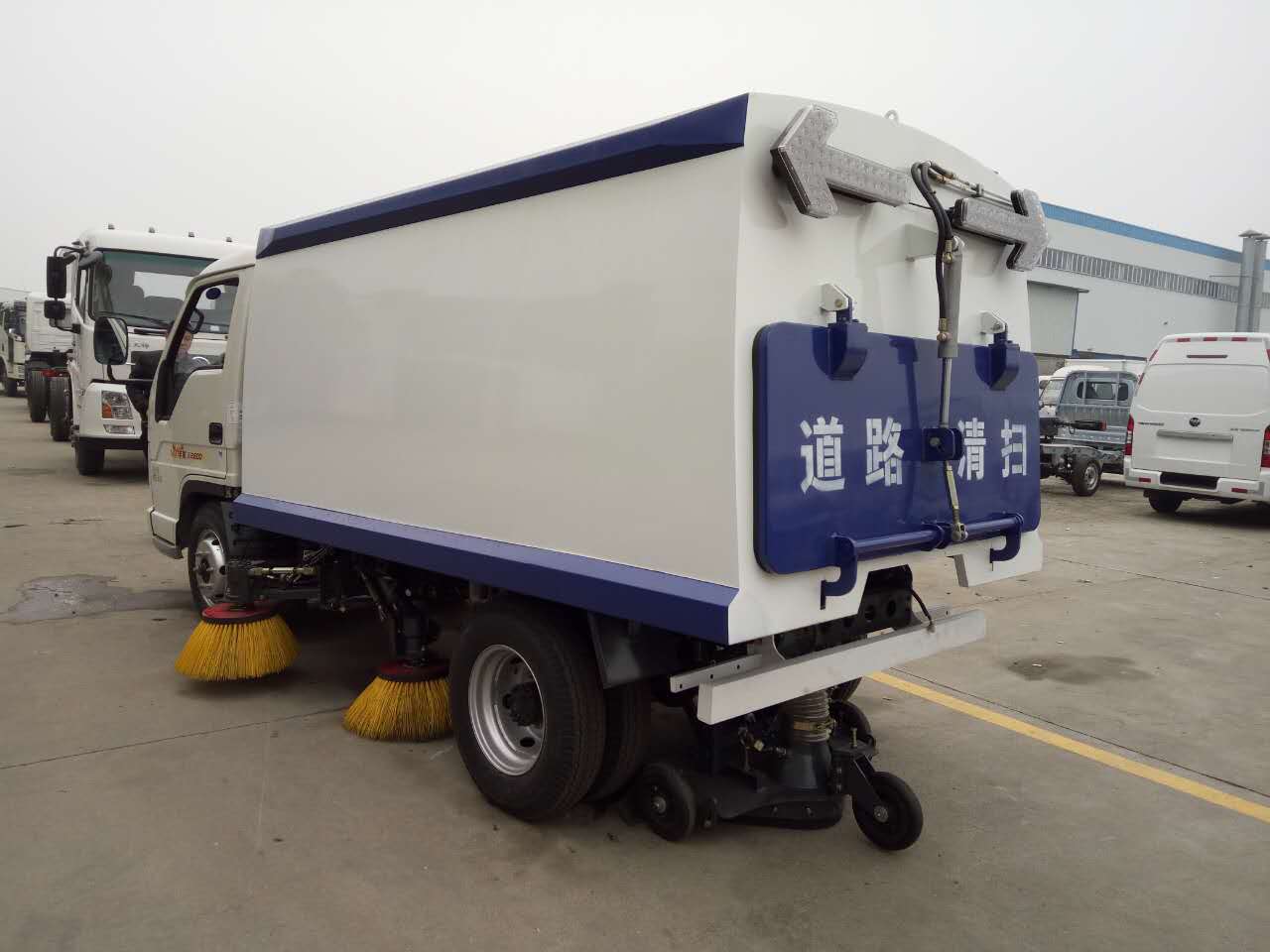 1、帶掃盤4把,江鈴副發動機(天錦為康明斯140馬力副發動機);三洋馬達;施耐德控件開關;海普瑞斯電磁閥組;廈門南超分離式離合器;免維護風機;不銹鋼垃圾箱,碳鋼水箱;尾部LED箭頭燈,手動泵應急系統。