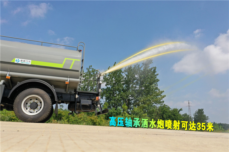 東風華神F5灑水車。罐體實際容積12立方米,采用優質碳鋼板卷壓成型。配備盈通專用灑水泵,前噴鴨嘴、側噴、后工作平臺及灑水高壓炮。華神玉柴165灑水車,灑水泵自吸高度為6米左右,灑水寬度14米左右,灑水炮射程28米左右,后工作平臺水炮可調成:直沖狀、大雨、中雨、小雨、毛毛雨,整車帶消防接頭、自流閥及自吸功能