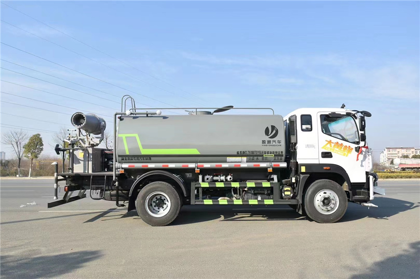 福田奧鈴霧炮車_奧鈴大黃蜂霧炮車_奧鈴12方抑塵車,奧鈴大黃蜂霧炮車價格,京牌灑水車,京牌奧鈴灑水車,京牌12方灑水車,京牌霧炮車,該車用途為抑塵降霾.主要裝置為罐體及噴霧裝置;罐體有效容積:12立方米;罐體外形尺寸(長×長軸×短軸)(mm):4000×2300×1540;側(cè)、后防護材料均為:Q235碳鋼,連接方式均為:螺栓連接,后部防護截面尺寸(mm):120×50,后部防護離地高度(mm):480;ABS系統(tǒng)型號:ABS-VI.E;生產(chǎn)企業(yè):廣州瑞立科密汽車電子股份有限公司.ABS系統(tǒng)型號:ABS-E;生產(chǎn)企業(yè):威伯科汽車控制系統(tǒng)(中國)有限公司,ABS系統(tǒng)型號:3550D-1010;生產(chǎn)企業(yè):東科克諾爾商用車制動系統(tǒng)(十堰)有限公司.采用3950mm軸距.選裝噴霧裝置樣式.選裝水炮支架位置,選裝高位花灑管道樣式,選裝自動球閥安裝位置,選裝自動炮裝置樣式,前伸500mm,整車長度為8285(mm)。