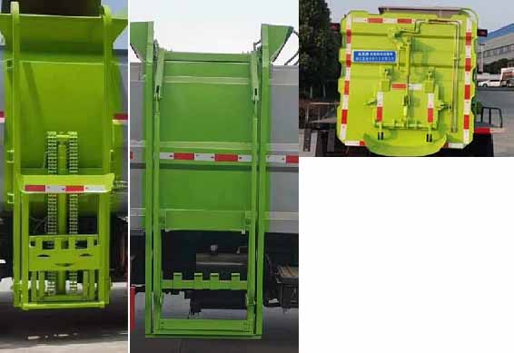 福田餐廚垃圾車,藍牌餐廚垃圾車,廚后垃圾車,餐廚掛桶式垃圾車,該車用于餐廚垃圾收集清運,主要專用裝置為箱體以及提升機構;隨底盤選裝駕駛室;ABS系統控制方式為4S/4M,ABS型號為CM4XL-4S/4M,生產廠家為廣州瑞立科密汽車電子股份有限公司;側、后防護材料均為:Q235碳鋼,側防護螺栓連接,后防護:焊接連接,后部防護截面尺寸(mm):100×50,后部防護離地高度(mm):390.發動機Q23-115E60,Q23-115C60的最大凈功率分別為82kW,82kW.選裝提升機構樣式及選裝后部樣式。