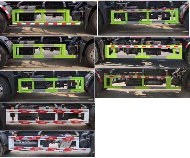 該車主要用于垃圾轉運,專用裝置為勾臂.側/后部防護裝置材料:Q235碳鋼,連接方式均為:螺栓連接;后防護截面尺寸120×50mm,后部防護離地高度(mm):480.ABS系統生產廠家,型號 :焦作博瑞克控制技術有限公司,J ABS;襄陽東風隆誠機械有限責任公司,ABS/ASR-24V-4S/4M.安裝具有衛星定位功能的行駛記錄儀.發動機型號與油耗值對應關系為(L/100km):B6.2NS6B210/26.1,D4.5NS6B220/26.3,D4.0NS6B195/26.4,YCS04200-68/26.5,CY4SK761/26.3,B6.2NS6B230/26.1,YCY30165-60/23.1.該車可選裝直接供電式ETC車載裝置.僅采用底盤4700mm,4500mm,3950mm軸距改裝.隨底盤選裝燃油箱,電瓶,尿素罐,儲氣筒左右安裝位置.隨底盤選裝限速裝置,限速89km/h. |