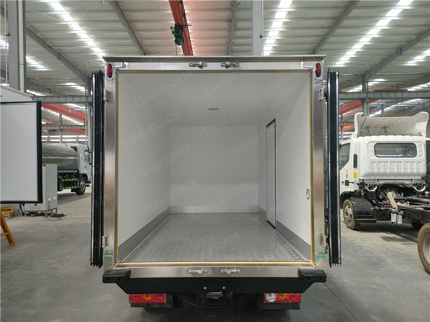 采用國際最先進的1200噸真空吸附一體成型制造。通用三明治斷橋隔熱工藝,是由鍍鋅管龍骨架加上中間8CM保溫環保材質擠塑板填充、防水木板用螺絲連接,外壁板選用國內優質的機制1.8mm厚度玻璃鋼,內壁選用1.2mm厚度熱縮板,廂體厚度80mm,門框厚度80mm,底板上面整體鋪鋁花紋板,高強度粘合劑,箱體真空吸附8小時以上,確保箱體一次成型,杜絕箱體起包,脫膠。廂體周邊3mm加厚型鋁合金包邊,不銹鋼包角,304不銹鋼門鎖,不銹鋼一體式門框,加大型防碰撞膠皮,廂內LED節能照明燈。可選-5°至-18°制冷機組.