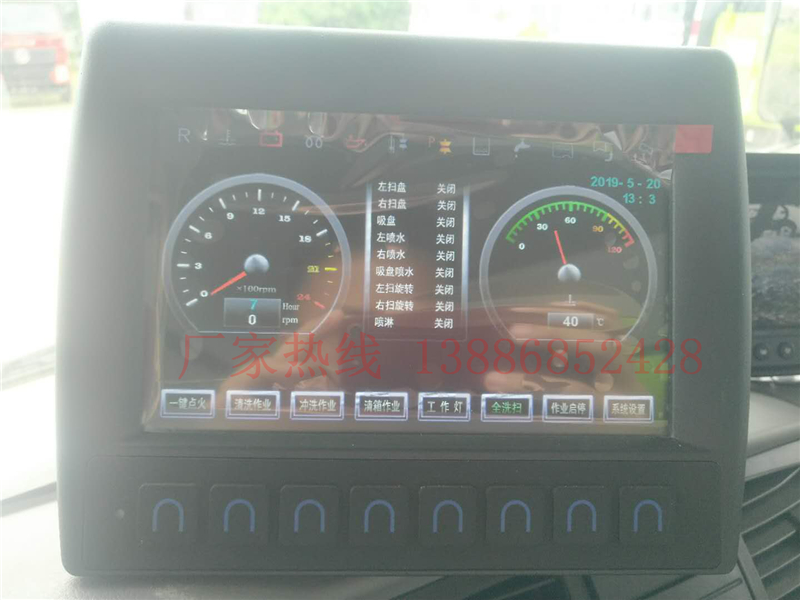 8、左右立掃為雙掃盤(pán),掃刷上加裝噴水裝置,用于噴霧降塵。左右立掃分開(kāi)控制,可實(shí)現(xiàn)右掃和全掃等不同的作業(yè)模式。