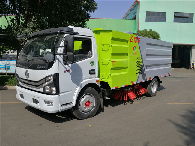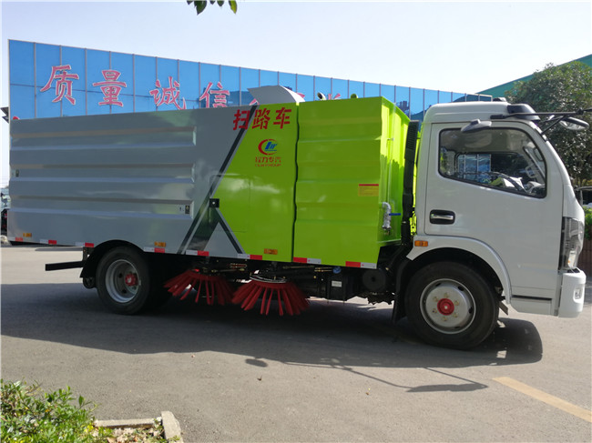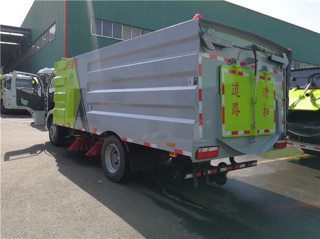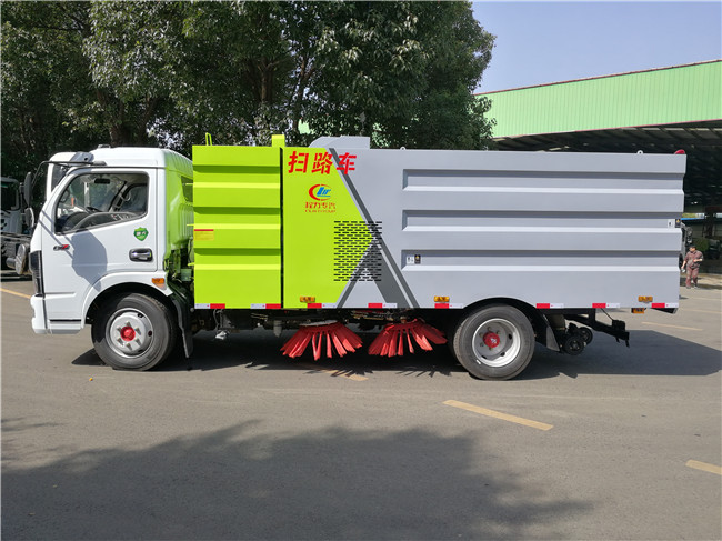 該掃路車采用東風(fēng)大多利卡二類底盤改裝,加裝副發(fā)動機、風(fēng)機、清水箱、垃圾箱、左右立掃、掃盤降塵系統(tǒng),液壓系統(tǒng)、專用裝置電控系統(tǒng)和副車架等改裝而成。
