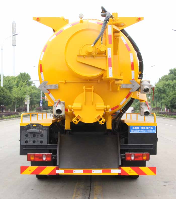 東風10方清洗吸污車,華神10方疏通吸污車,管道疏通車,市政下水道清理車,高壓清洗吸污車,該車用于下水道排污及疏通,專用裝置:罐體、吸污泵、清洗沖刷總成.該車輛具有舉升功能.罐體外形尺寸(罐體總長×直徑)(mm):4900×1750(前面1600mm為清水罐,后部3300mm為污水罐);污水罐總容量:7.04立方米,污水罐有效容積:6.7立方米,介質:液態污物,密度800千克/立方米;清水罐總容量:3.6 立方米,有效容積:3.6 立方米,介質:水,密度1000千克/立方米;清水罐和污水罐為獨立罐體,清洗功能時用清水罐,吸污功能時用污水罐,污水罐和清水罐不可同時滿載,兩罐不可同時使用.ABS型號及生產廠家為:3631010-C2000/東科克諾爾商用車制動系統(十堰)有限公司,J ABS/焦作博瑞克控制技術有限公司;側、后防護材料均為:Q235碳鋼,側防護采用螺栓連接,后防護采用焊接連接,后部防護截面尺寸(mm):120×50,后部防護離地高度(mm):450.隨底盤選裝駕駛室新風格裝飾件,隨底盤選裝油箱,尿素罐,電瓶框布置位置.選裝側面樣式,選裝后部出口樣式. |
